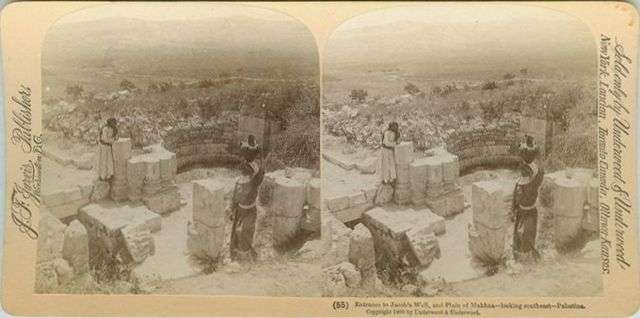 According to the Bible, Jacob was sitting at the well when he met Rachel, a Palestinian woman. Rachel tries to draw water from the well and Jacob helps her. Jacob and Rachel married and the well is known as the place where the couple met.